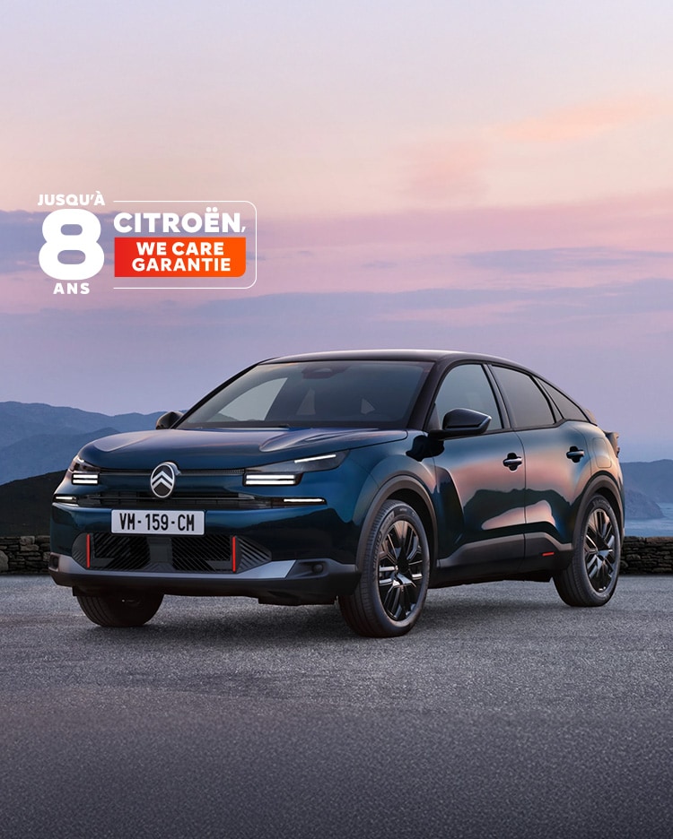 - La garantie Citroën We Care, qui offre une extension de garantie de 6 ans avec une couverture spéciale après l'expiration de la garantie constructeur standard. Activée lorsque l'entretien est effectué au sein du réseau Citroën agréé, conformément au calendrier d'entretien recommandé, elle reste valable jusqu'au prochain rendez-vous d'entretien, dans la limite de 8 ans ou 160 000 km. Ce service unique couvre les composants essentiels tels que le moteur, la boîte de vitesses, la transmission et la chaîne cinématique, pour tous les véhicules neufs immatriculés à partir du 10 janvier 2025. Citroën We Care montre l'engagement de Citroën envers la qualité et la fiabilité.